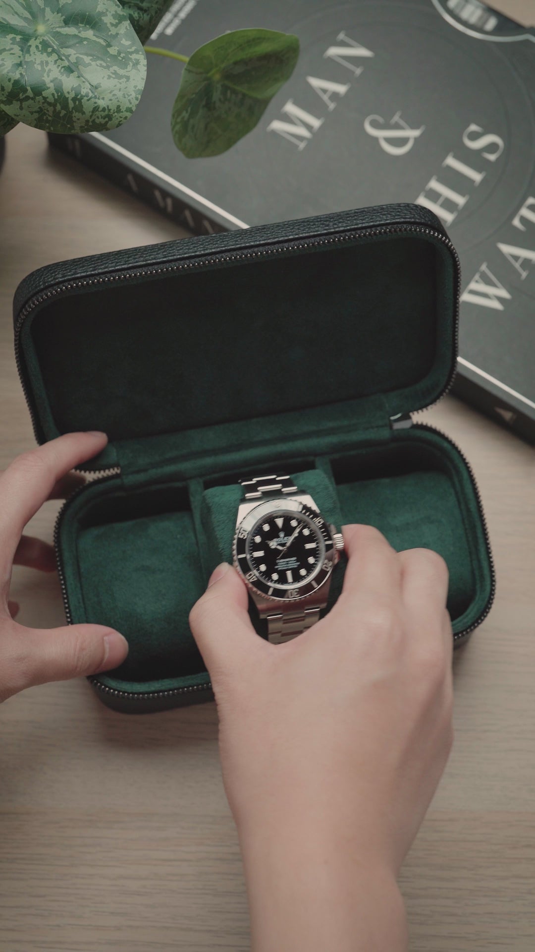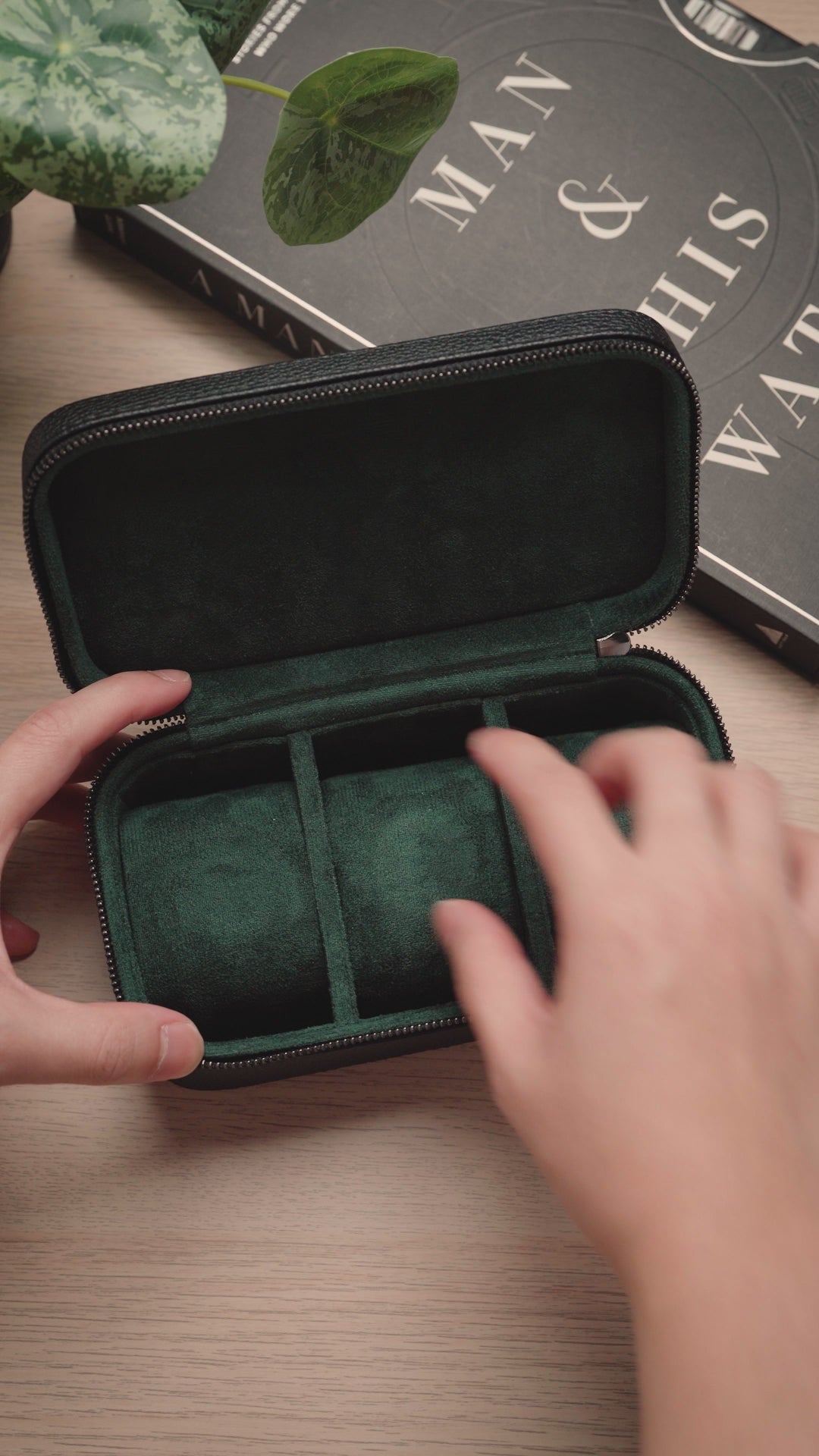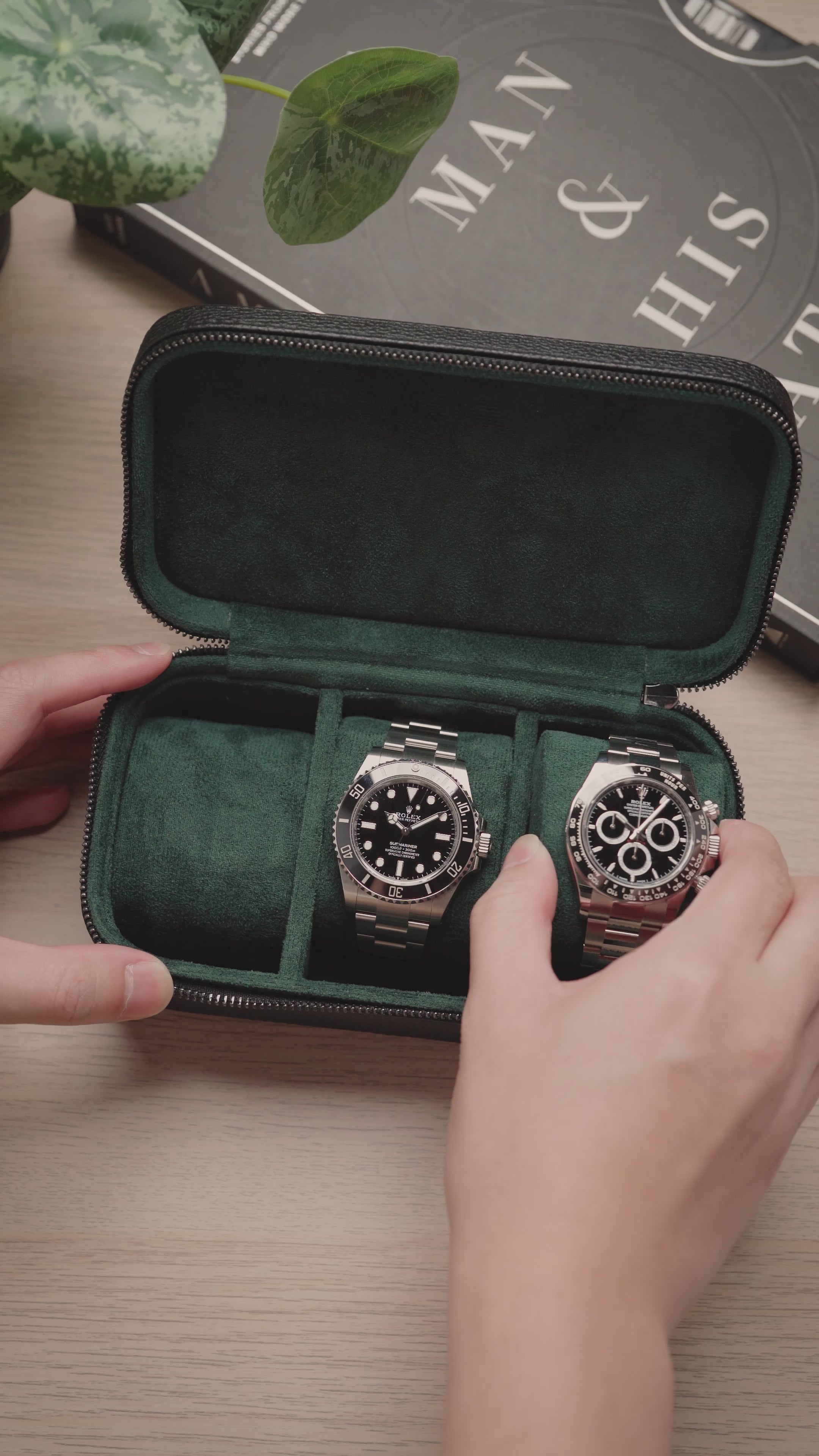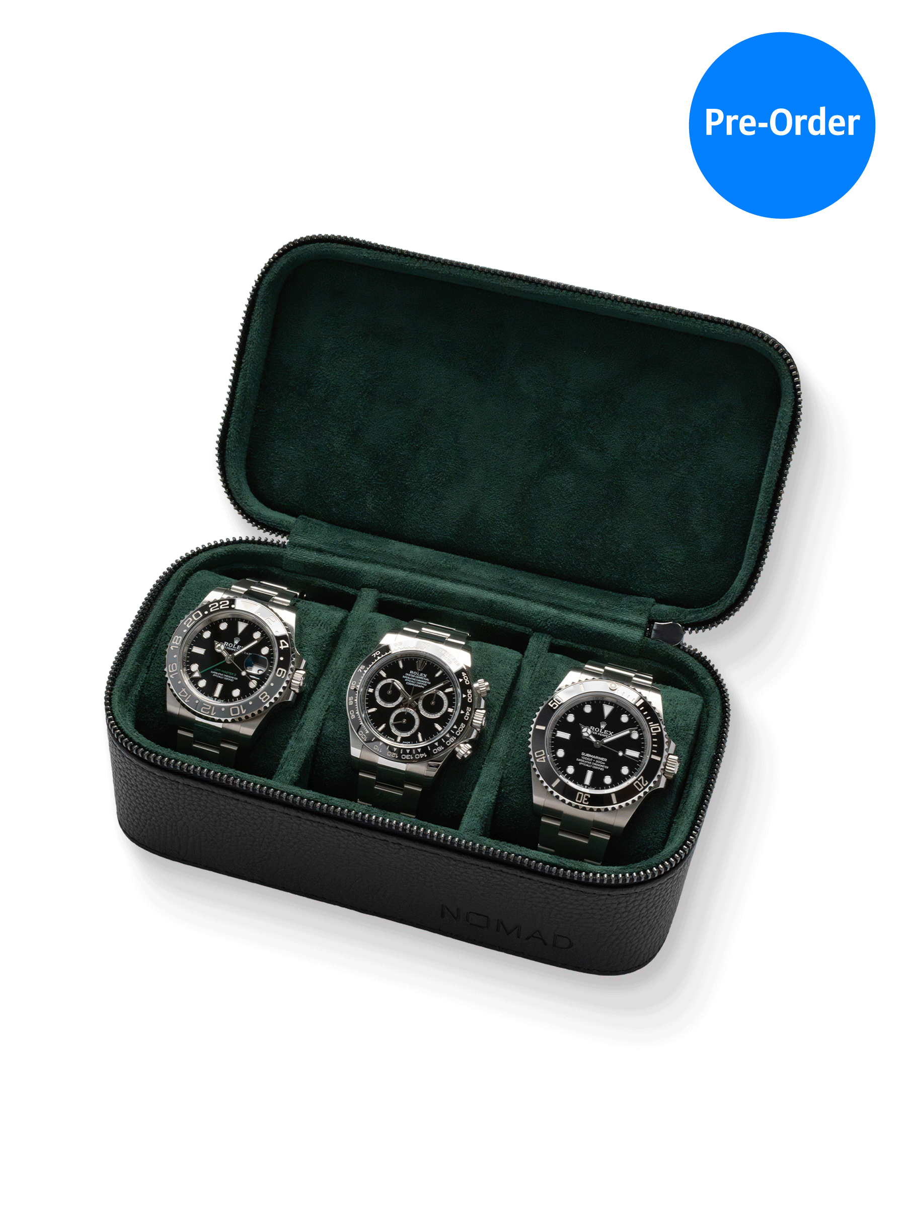 Heritage Leather Travel Case in Black/Green (3 Watch) - Pre-Order